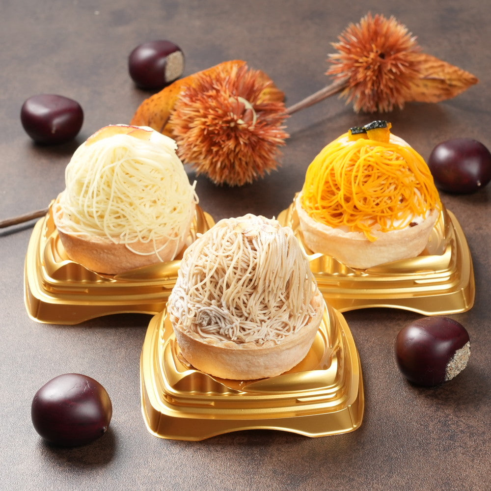 いも栗カボチャより手軽なサイズが魅力のモンブランセットをご用意しました。