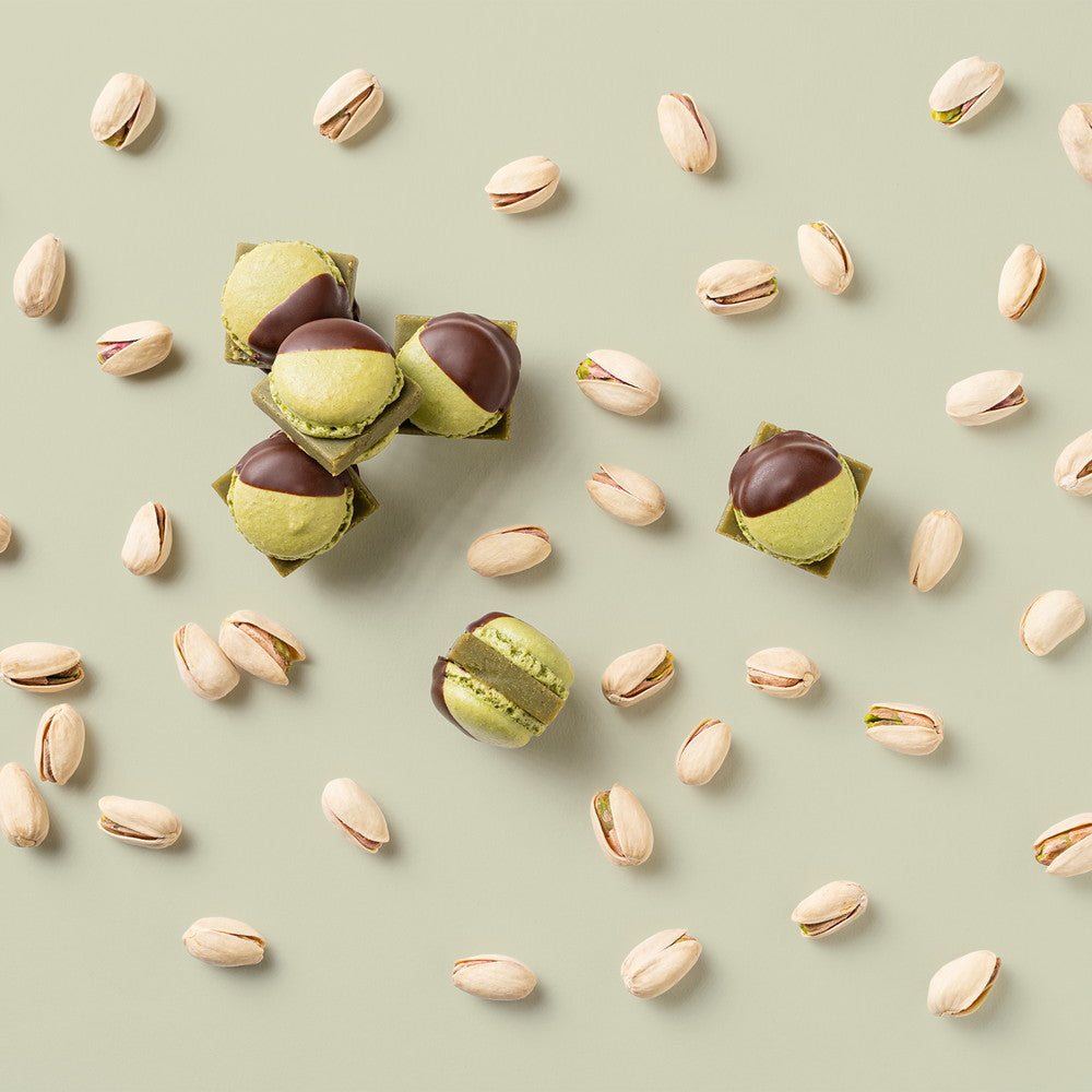 ピスタチオの豊かな風味と、カカオ香るチョコレートが織りなす芳醇な味わいと、刻んだピスタチオの食感と香りをお楽しみください。