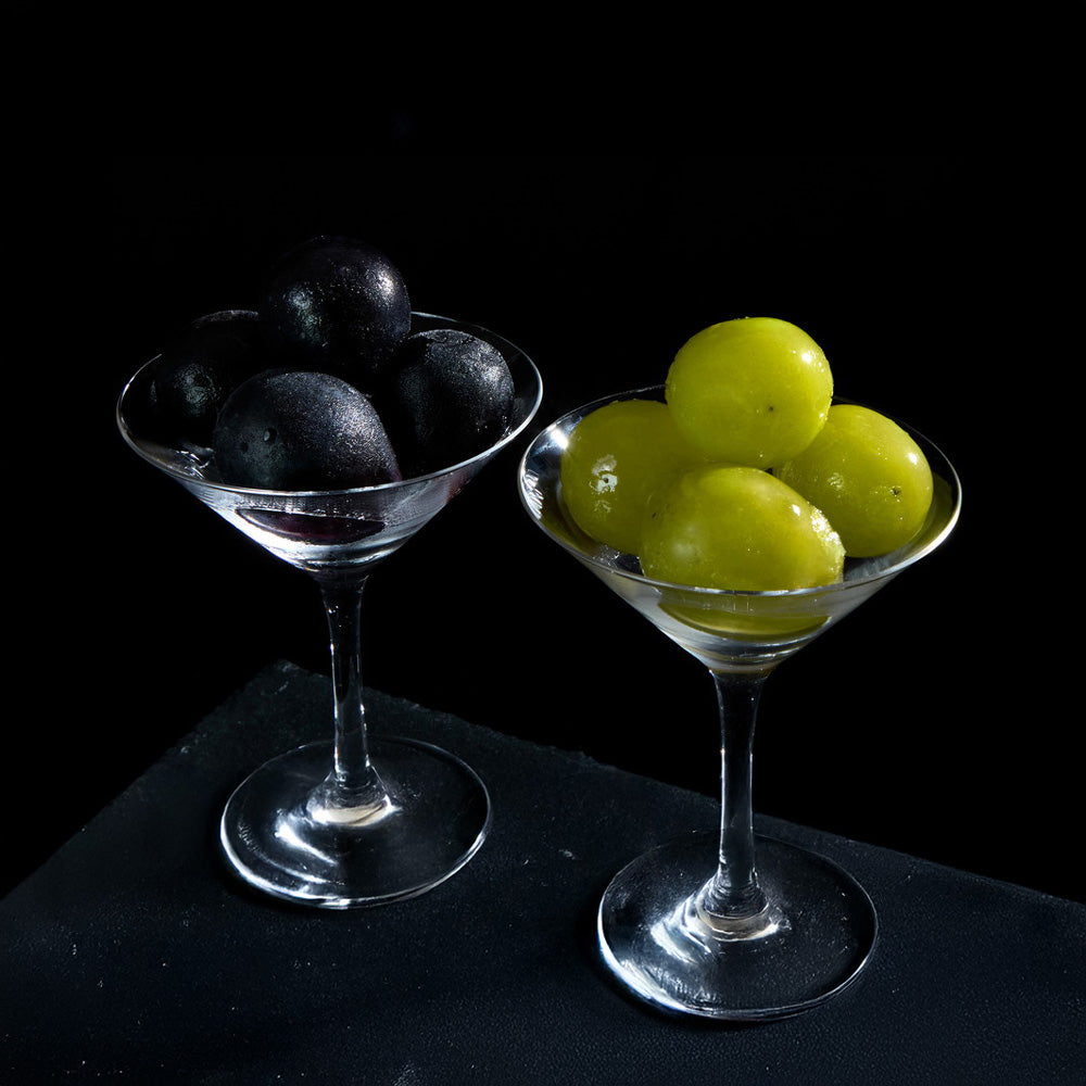 ■皮ごと食べられる大粒のシャインマスカットと、長野で育った深い紫色の美しい果皮のナガノパープルの2種を、一番おいしい旬のタイミングで-30度の液体アルコールに漬けて凍眠冷凍しました。半解凍でシャーベットでお召し上がりいただくほか、ジュースやお酒の氷の代わりとして、スムージーやデザートのトッピングなど、フルーツ本来の香りや甘さをお楽しみください。