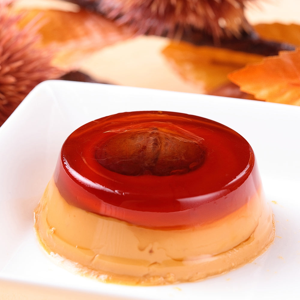 ■ムースのようにクリーミーなマロンプリンとカラメルセ゛リーの二層仕立て。カラメルのほろ苦さが濃厚なプリンの美味しさをひきたてます。