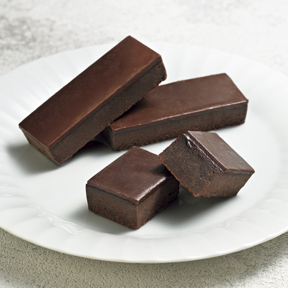 ■濃厚で口どけの良いガトーショコラ。ココアを練り込んだ生地に国産のコクのあるチョコレートを混ぜ合わせて、しっとりとした生地に焼き上げました。生地にチョコレートソースを塗り、一晩寝かせ、仕上げに洋酒を吹きかけます。時間が経つにつれ、ソースが生地に染み込み口当たりの良い濃厚なガトーショコラが出来上がります。チョコレートのコクと香りをしっとりとした食感とともにお楽しみください。