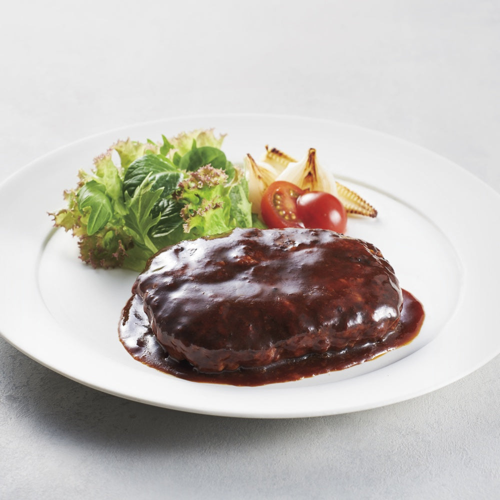■ラ・ロシェル坂井宏行シェフのデミグラスソースハンバーグ。しっかり焼き目をつけ中にお肉の旨みを閉じ込めたハンバーグを、甘みが出るまで炒めた玉ねぎとじっくり煮込んだ野菜の酸味と甘みが溶け込んだ、こだわりのデミグラスソースと合わせました。湯せんでお召し上がりいただけます。