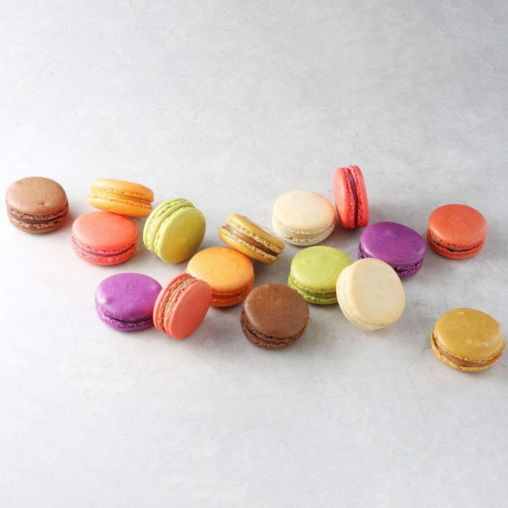 焼き上げたマカロンはすぐに急速冷凍をかけています。マカロンは作られた直後が最も美味しく味わえる時間とされており、お客様自身で解凍していただくことで、出来立てのフレッシュな味わいと食感をお楽しみいただけます。