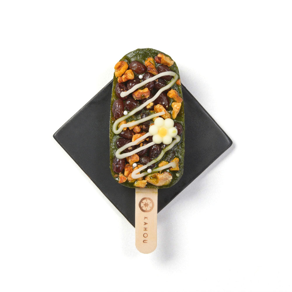 京都宇治産抹茶とカルーア抹茶リキュールカクテル、北海道小豆と胡桃をトッピングしました。