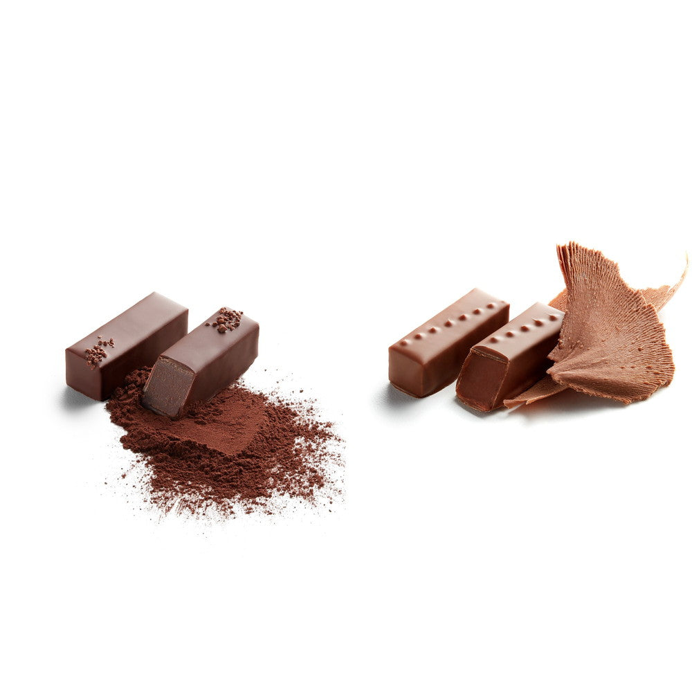 チョコレートの味わいの構造を楽しむことのできる、まさに「オートクチュール」チョコレート。ラ・メゾン・デュ・ショコラでは、プレーン ガナッシュと果実やハーブで風味をつけたフレーバーガナッシュがございます。