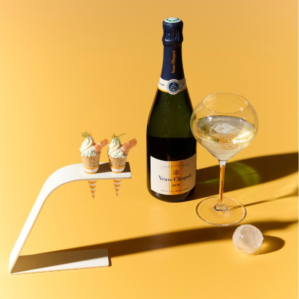 ヴーヴ・クリコでは、グラスを半分まで満たし、氷をそっと入れるようにしてお楽しみいただいています。晴れた日のテラスや、夏の爽やかな夜のひとときに最適です。
