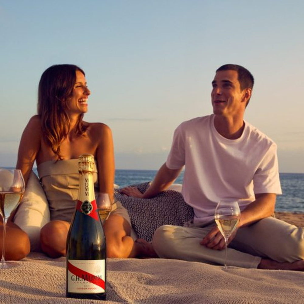 ■マム コルドン ルージュのボトルは、細部までこだわり、伝統と革新を受け継いだデザインです。象徴的な赤いリボンとクリーム色のラベルのコントラストが、気品あるエレガンスを際立たせます。